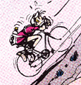 Dans La mauvaise tête, Fantasio qui cherche à rejoindre discrètement la ville de Montauris participe à une étape du tour…. en queue de peloton.